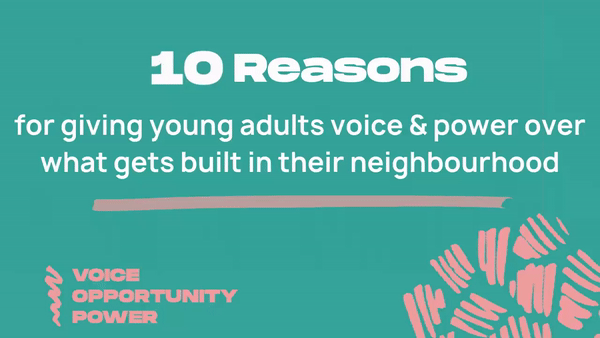 Giving young adults voice & power over what gets built creates better places for everyone: Advocating for youth participation in planning, regeneration, and neighbourhood management.